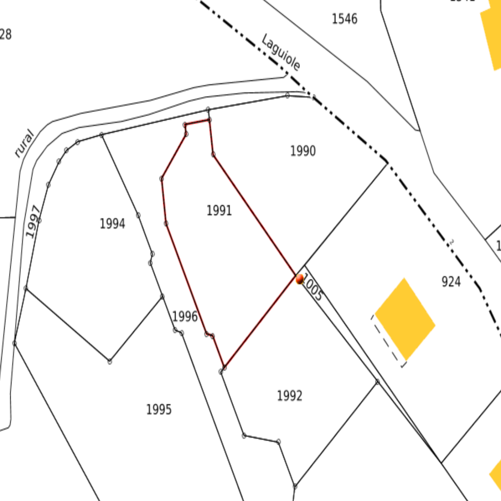 Terrain constructible à vendre : à quelques pas du centre-ville de LAGUIOLE, un terrain en lotissement de 890 m² sur lequel il est possible de construire jusqu'à 534 m² maximum.